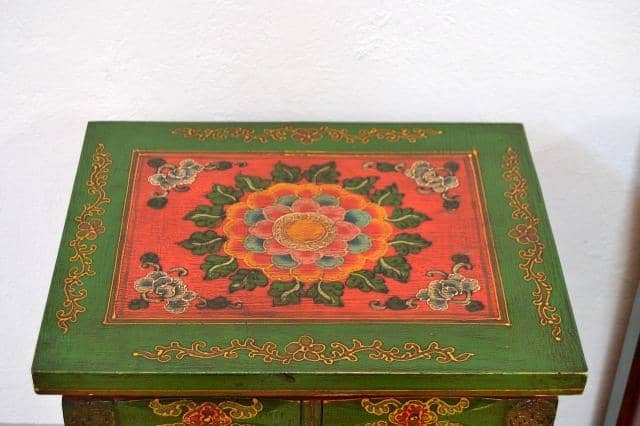 Comodini tibetani lacca arancio interamente decorati