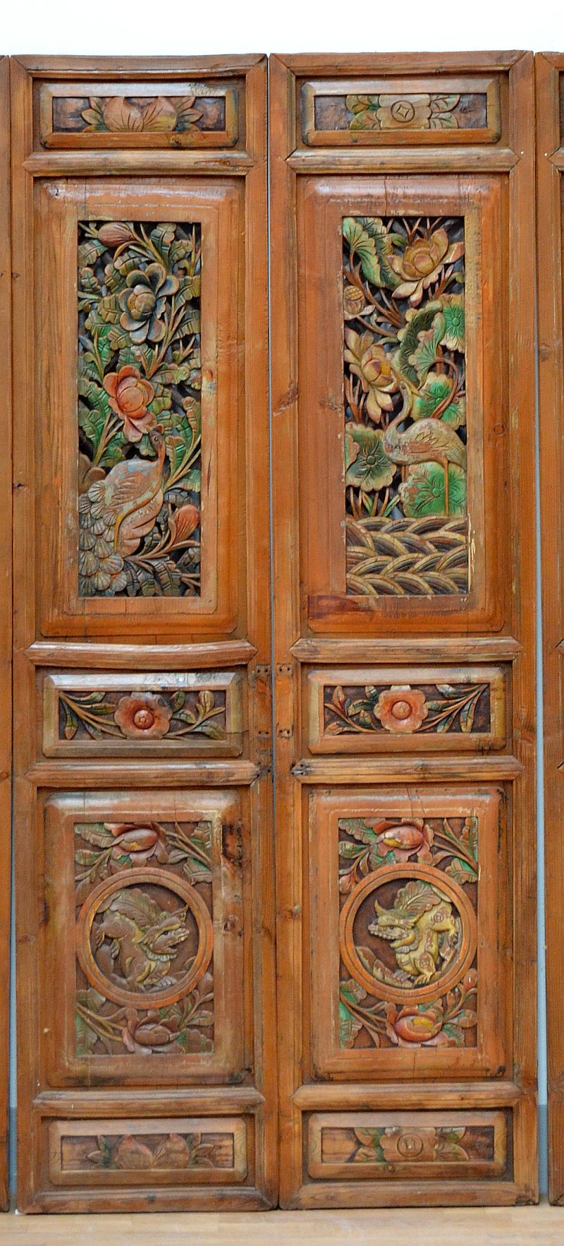 Questi vecchi pannelli intagliati etnici, paraventi cinesi e porte decorate erano il segno distintivo di famiglie istruite e colte. Le tipiche porte cinesi scorrevoli o le finestre intagliate che trovi nella nostra collezione sono state utilizzate nelle case tradizionali cinesi fino a tutto il XIX secolo.