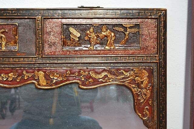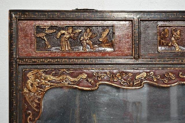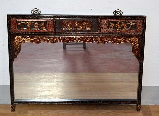 Specchio cinese antico in legno decorato 1890′ Yunnan